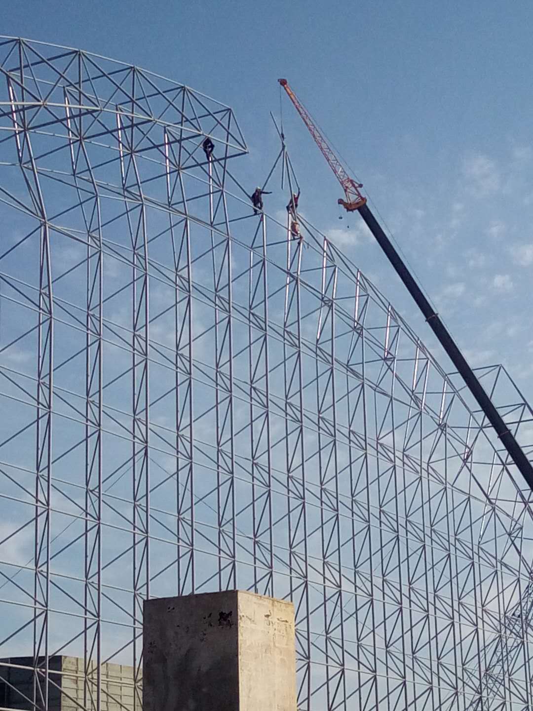 6. 逐漸查驗(yàn)網(wǎng)格規(guī)格,逐漸往前推動。網(wǎng)架腹桿網(wǎng)架上弦桿的安裝應(yīng)互相配合著開展。